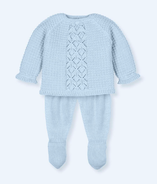 CONJUNTO DE PUNTO "CONTA" COLOR BLANCO/CELESTE.